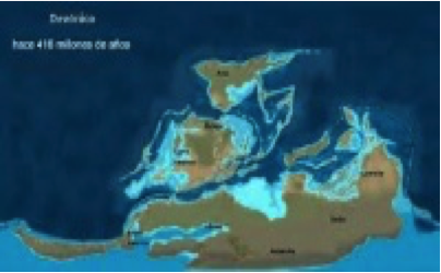 Durante el Devónico tiene lugar el hecho de mayor trascendencia en la historia de los seres vivos, que es la progresiva población de los continentes: primero por los vegetales (Criptógamas vasculares primitivas, Psilofitales), apareciendo las primeras plantas con semillas; y la colonización del medio terrestre por animales vertebrados: Artrópodos (Gigantostráceos, Escorpiones e insectos), Pelecípodos y Vertebrados ( Peces acorazados, Crosopterigios) y ya al final de éste período los primeros anfibios (Ictiostégidos), pudiendo decirse que al finalizar el Devónico, la tierra firme estaba ya definitivamente conquistada por los seres vivientes.